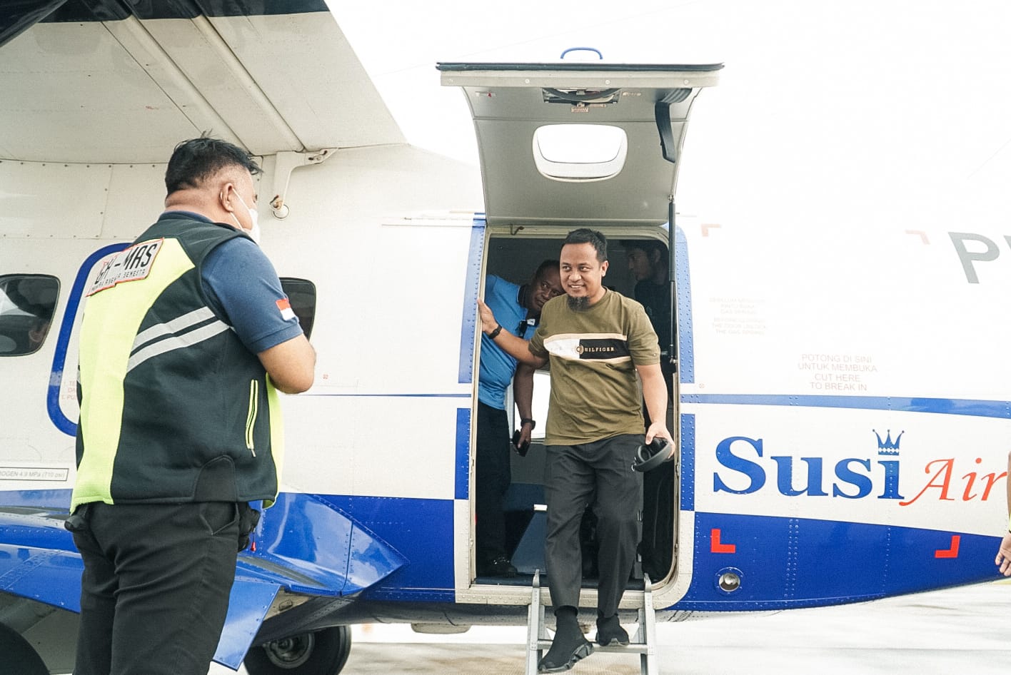 Dalam kunjungan kerja itu, Gubernur Andi Sudirman turut menggunakan penerbangan subsidi dari Makassar ke Bone melalui Susi Air.