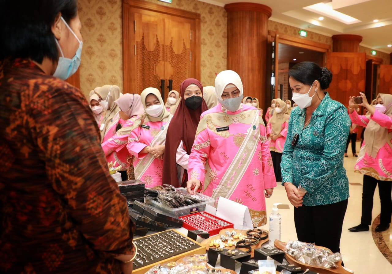 Ketua TP PKK Kota Makassar, Indira Yusuf Ismail, menyampaikan tujuan diadakannya study comparative, untuk saling berbagi ilmu, demi mengoptimalkan pendampingan UMKM.
