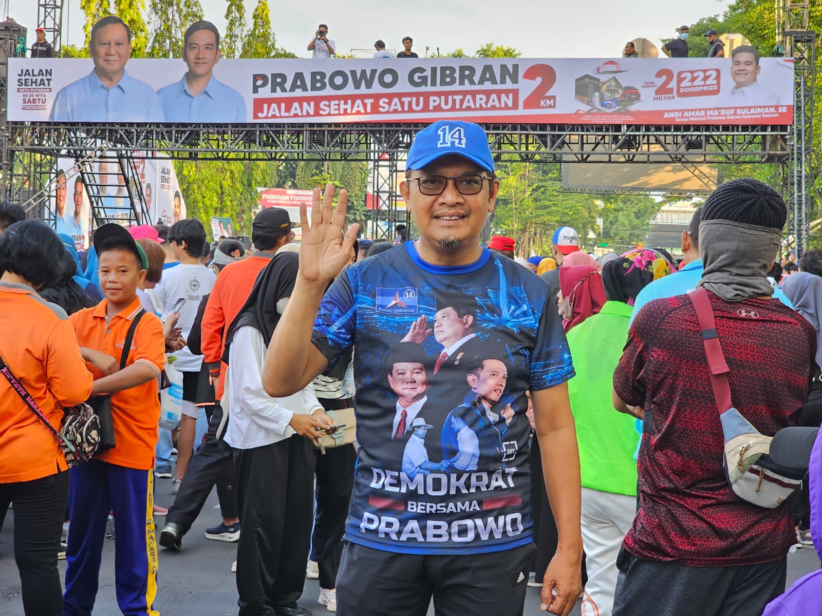 Salah seorang Caleg DPR RI Dapil Sulsel 1 dari Partai Demokrat Abdul Rachmat Noer turut serta berbaur dengan peserta jalan sehat. Mengawali start dari depan Monumen Mandala Jl. Sudirman, Rachmat ikut dalam barisan peserta jalan santai.