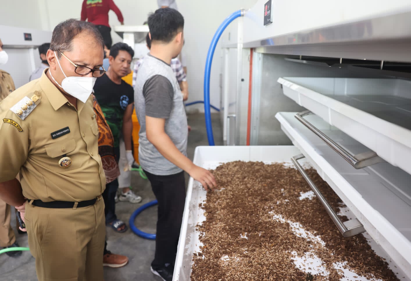 LANGITKU.NET , Makassar – Walikota Makassar, Moh. Ramdhan ‘Danny’ Pomanto mengunjungi uji teknologi food waste bank based on the BSF Breeding Technology di Wilayah Bank Sampah Pusat yang di perlihatkan langsung oleh tim Entomo.co di Paccerakkang, Senin (30/5/22).