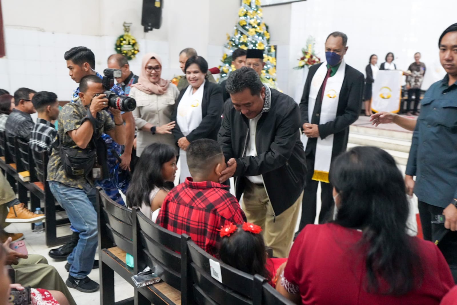 “Terimakasih kita sudah sama-sama Pj Gubernur, Pak Kapolda dan semua Forkopimda, Ibu Ketua yang luar biasa telah mendampingi pelaksanaan kegiatan ibadah Natal malam ini,” tuturnya.
