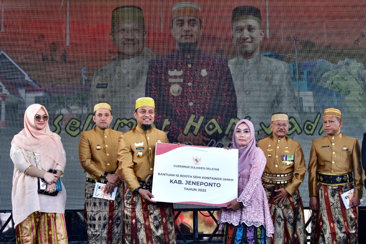 “Kita menyerahkan bantuan 10 booth Semi Kontainer UMKM Kabupaten Jeneponto,” kata Gubernur Andi Sudirman.