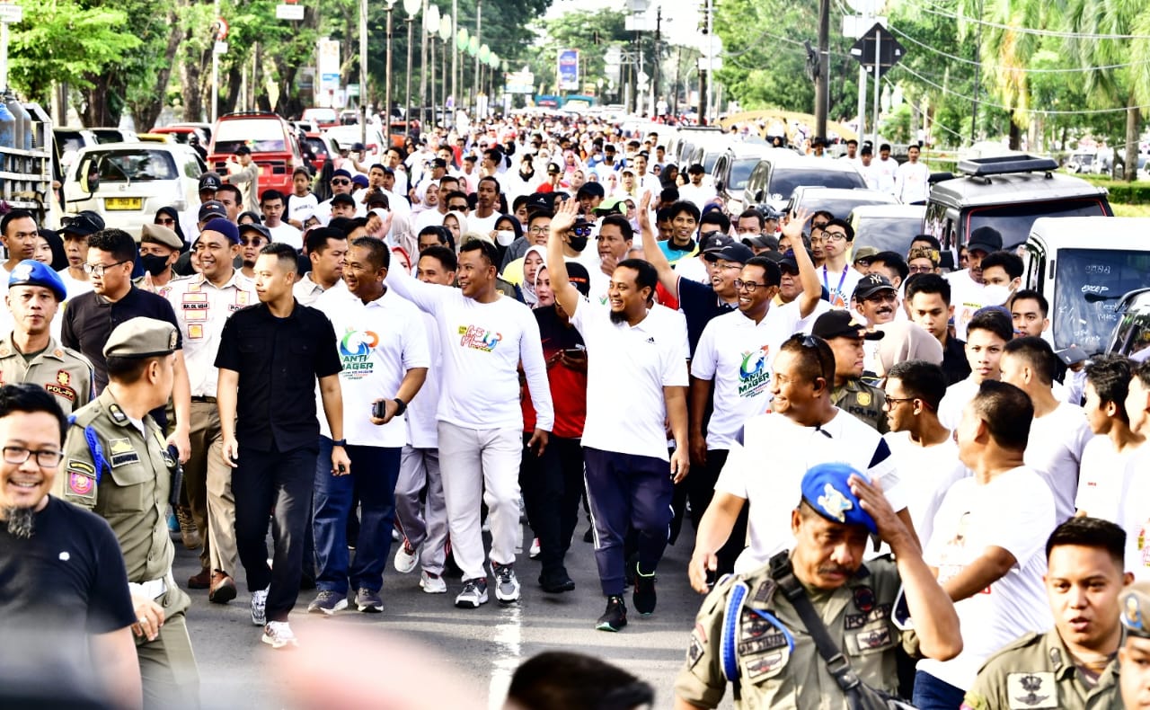 Jalan sehat Anti Mager yang diikuti sekitar 50 ribu peserta ini dilepas langsung oleh Gubernur Andi Sudirman di Lapangan H. Makkatang Dg. Sibali, Takalar, Sabtu (11/2/2023).