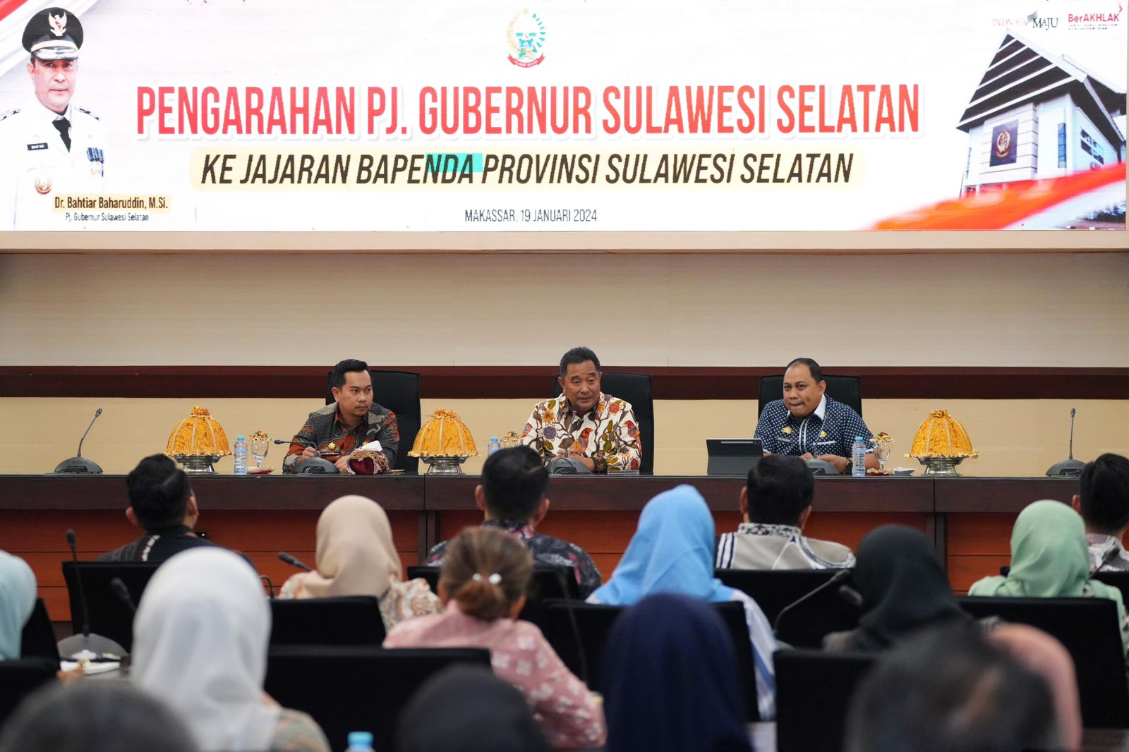 LANGITKU. NET, Makassar – Penjabat Gubernur Sulsel, Bahtiar Baharuddin, mengajak seluruh jajaran Badan Pendapatan Daerah (Bapenda) dan Badan Keuangan dan Aset Daerah (BKAD) Sulsel, untuk terus berupaya meningkatkan pendapatan daerah melalui perbaikan kinerja dan inovasi. Iapun berharap, target-target pendapatan bisa dicapai tahun ini.
