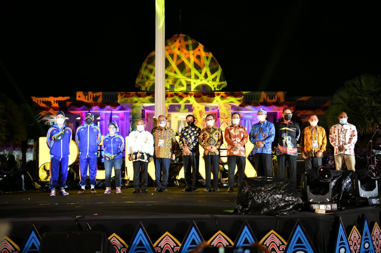 Dalam acara ini juga sekaligus dilakukan penyerahan api PON dari Duta PON Papua, yakni Boaz Salosa, Raema Lisa Rumbewas, Rafi Ahmad kepada Gubernur Papua, Lukas Enembe. Andi Sudirman bersama Gubernur Jawa Barat, Ridwan Kamil dan sejumlah kepala daerah lain mendapatkan kehormatan untuk mendampingi Lukas yang juga Ketua Umum PON XX Papua, menyulut api PON sebagai tanda dimulainya PON di Bumi Cendrawasih ini.