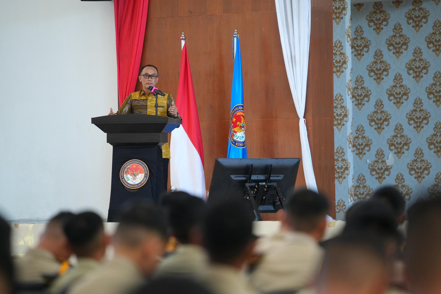 LANGITKU.NET, Gowa – Penjabat Gubernur Sulawesi Selatan, Prof Zudan Arif Fakrulloh, memberi kuliah umum di Institut Pemerintahan Dalam Negeri (IPDN) Kampili, Kabupaten Gowa. Kuliah umum ini dalam rangka peningkatan wawasan mengenai pemerintah daerah bagi Satuan Praja Muda Angkatan XXXIII dan mewujudkan kader pelopor pemerintah yang berakhlak.