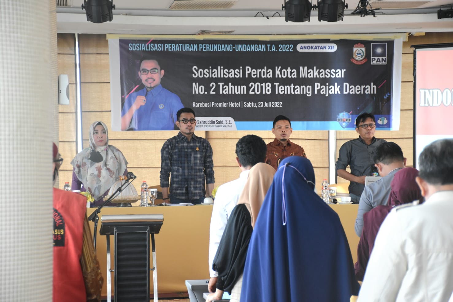 LANGITKU.NET , Makassar – Sahruddin Said, Anggota DPRD Kota Makassar menemui konstituennya. Kali ini, agendanya Sosialisasi Peraturan Daerah (Perda) nomor 2 tahun 2018 tentang Pajak Daerah, di Hotel Karebosi Premier, Sabtu (23/7/2022).