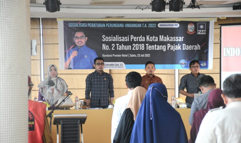 LANGITKU.NET , Makassar – Sahruddin Said, Anggota DPRD Kota Makassar menemui konstituennya. Kali ini, agendanya Sosialisasi Peraturan Daerah (Perda) nomor 2 tahun 2018 tentang Pajak Daerah, di Hotel Karebosi Premier, Sabtu (23/7/2022).
