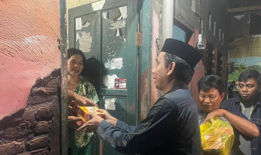 “Ibu, Bapak bangun ki sahur. Saya Rudianto Lallo datang berbagi, “Ujar Rudianto Lallo sembari mengetuk-ngetuk pintu rumah masyarakat.