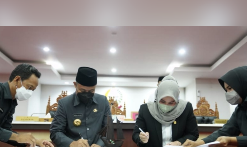 LANGITKU.NET , Makassar – Gubernur Sulawesi Selatan Andi Sudirman bersama dengan Ketua DPRD Sulsel Andi Ina Kartika melakukan penandatanganan persetujuan bersama terhadap 3 Rancangan Perda pada Rapat Paripurna DPRD Sulsel, Jum’at (22/4/2022).