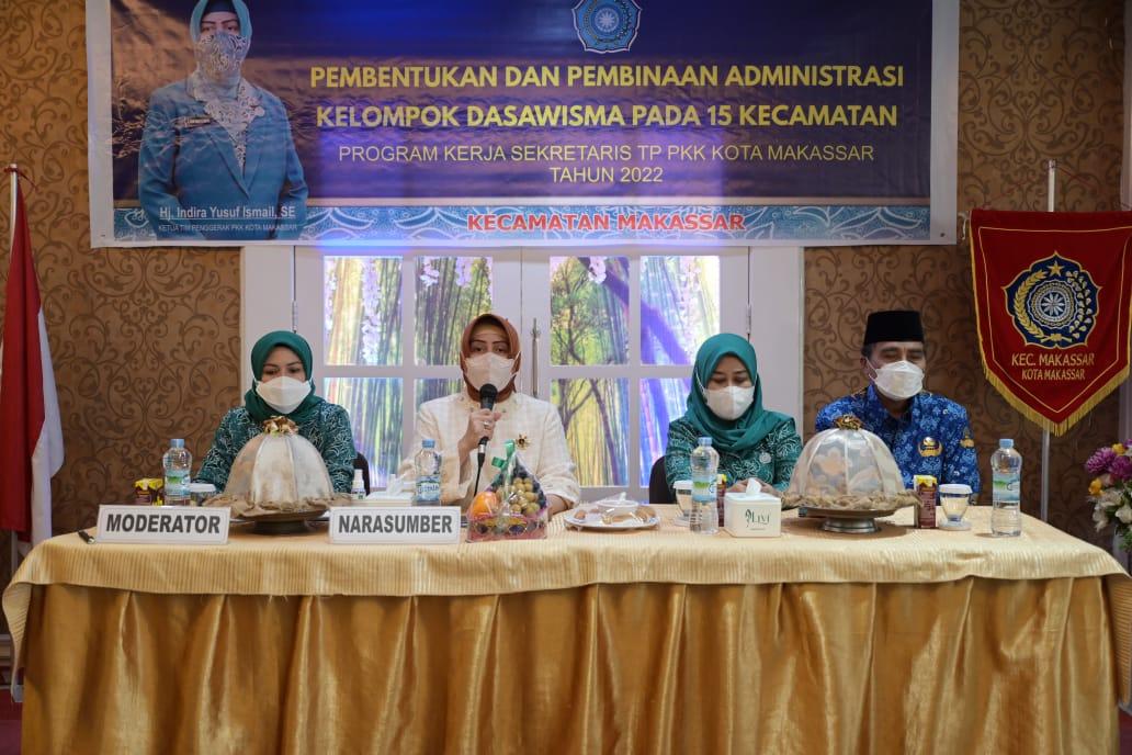 LANGITKU.NET , Makassar – Ketua TP PKK Makassar, Indira Jusuf Ismail membuka secara resmi kegiatan pembentukan dan pembinaan administrasi kelompok dasawisma di 15 kecamatan se Kota Makassar.
